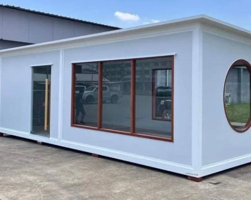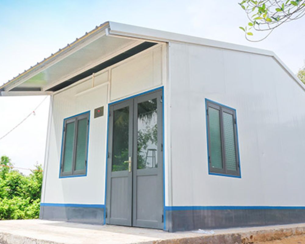 - Cửa ra vào & cửa sổ: Làm từ vật liệu nhẹ như nhôm kính, thép sơn tĩnh điện hoặc panel ghép đồng bộ với công trình.